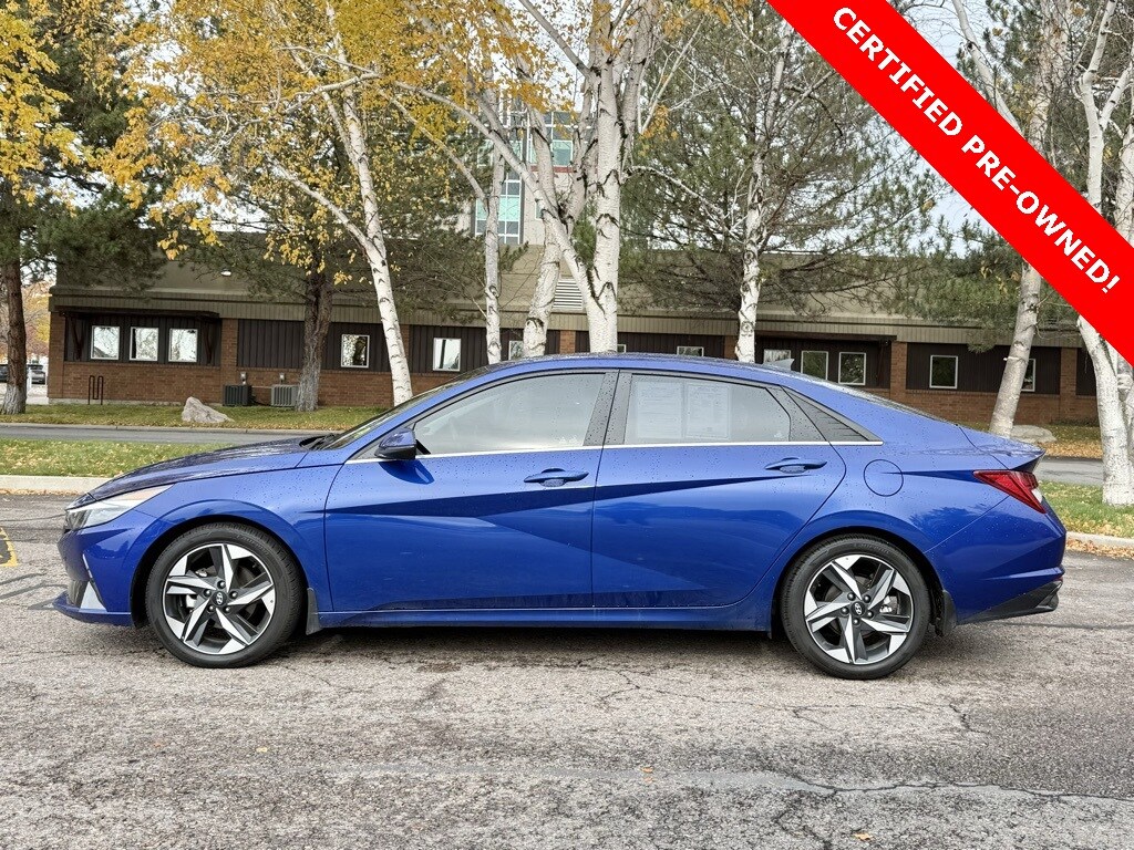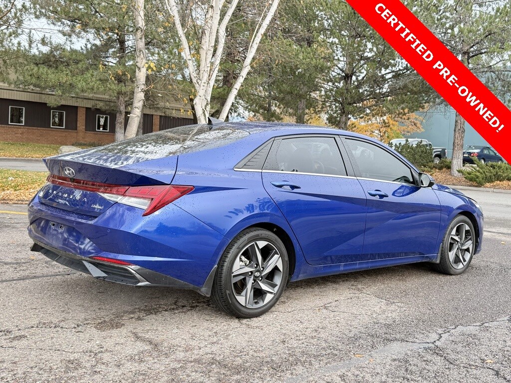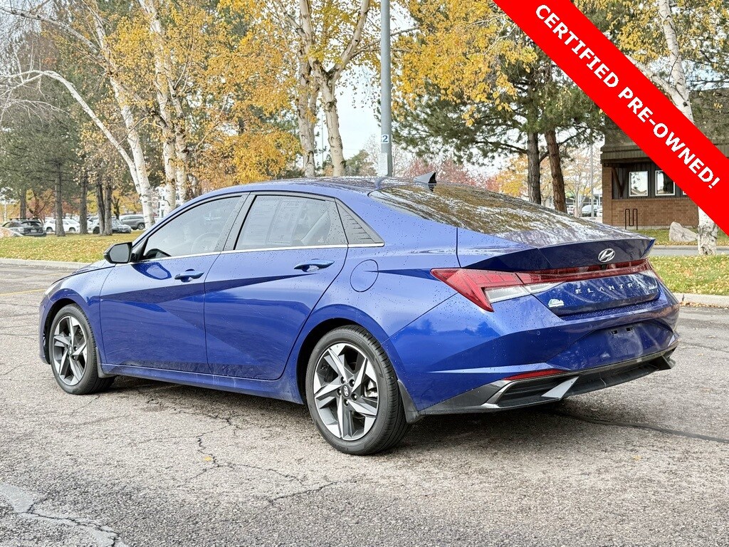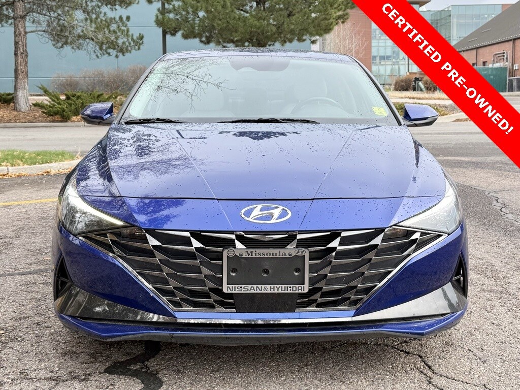 Certified. 2023 Hyundai Elantra Limited Intense Blue FWD CVT I4 30/40 City/Highway MPG Odometer is 10585 miles below market average!